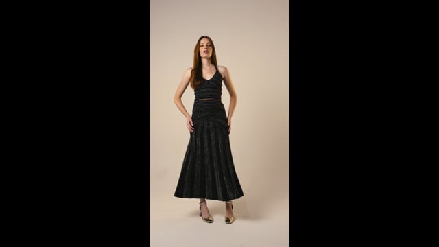A tendência do brilho voltou com força nessa e nas próximas coleções. A Saia Julia modela e valoriza o corpo feminino. Ideal para eventos importantes e noturnos, essa saia fica linda com o Top Tatiana e um belo salto alto. A peça é toda trabalha nas nervuras e parciais, com direções estratégicas. A malha é composta de rayon, elastano e lurex, garantindo estrutura e ótima modelagem ao corpo. O cós tem elástico interno.
